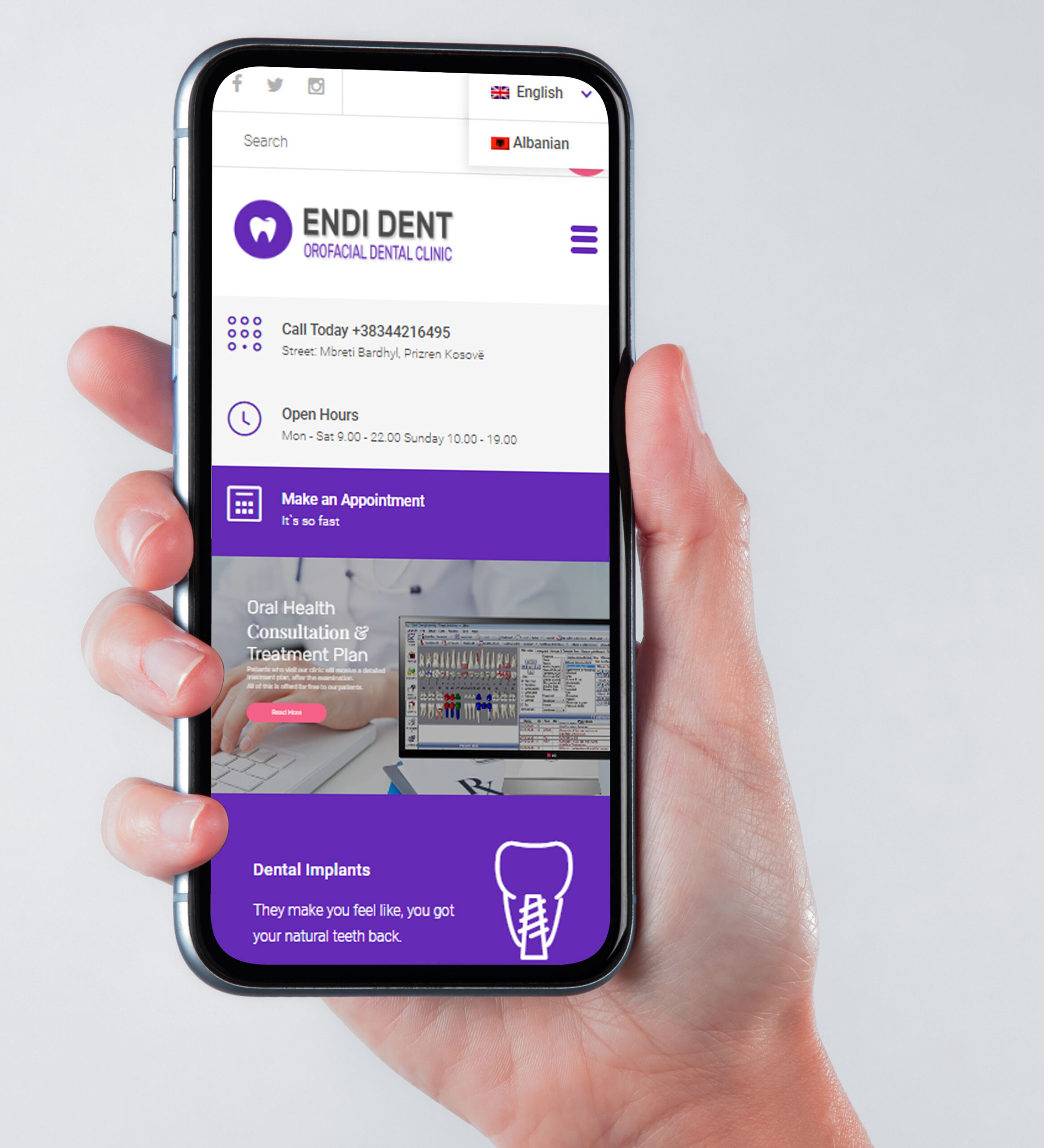 Përmbajtje në disa gjuhë: Zgjeroni audiencën tuaj duke ofruar përmbajtje edhe në gjuhë të tjera si Anglisht, Gjermanisht etj. Ky funksionalitet ju bën të gatshëm për të pritur pacientë nga vende të ndryshme.